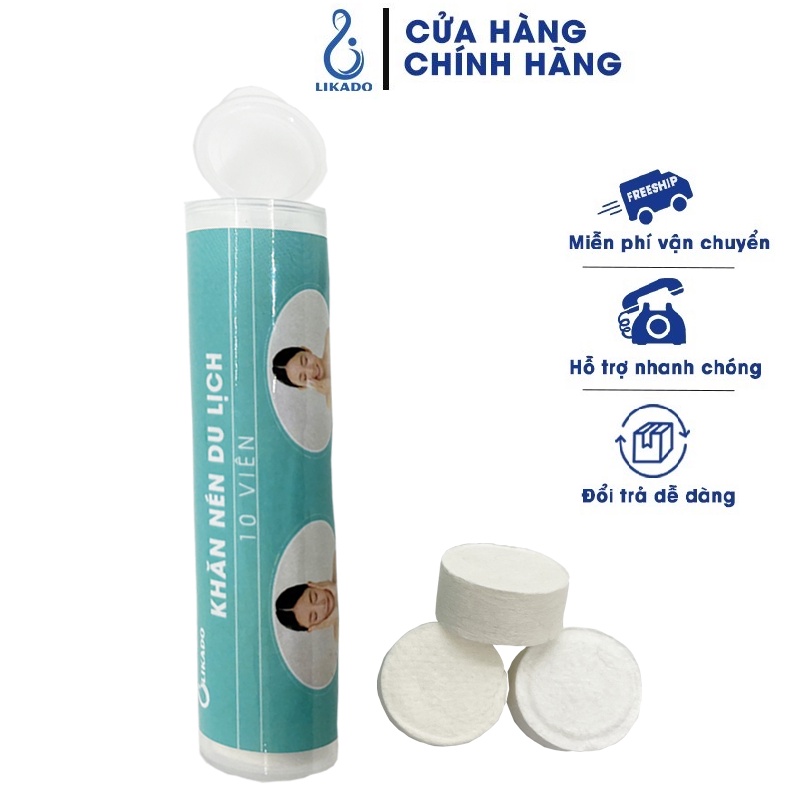 KHĂN GIẤY NÉN DẠNG VIÊN KẸO LIKADO CAO CẤP LIKADO DẠNG ỐNG 10 VIÊN